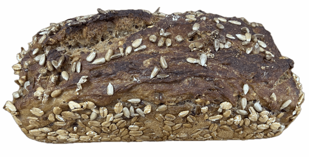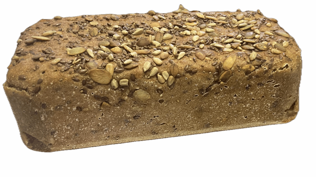 Zutaten: Bio-Weizenvollkornmehl, Bio-Roggenvollkornmehl, Bio-Dinkelvollkornmehl, Wasser, Kürbiskerne, Sonnenblumenkerne, Leinsamen, Apfelsaft, Salz, Weizensauerteig, Chiasamen