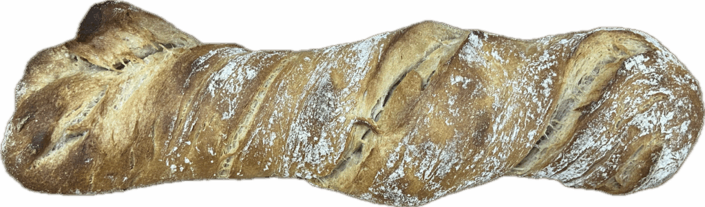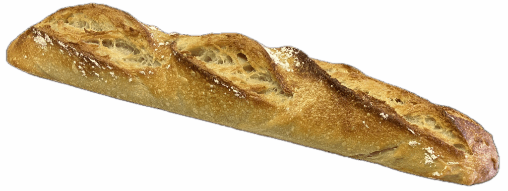 Baguette bedeutet übersetzt „kleiner Stock, Stab“ und beschreibt die Form des Brotes. Das Baguette ist ein Brot mit einem hohen Anteil an Kruste im Verhältnis zur Krume, deren unregelmäßige Porung typisch ist. Durch den Weizensauerteig und die lange Teigruhe entsteht ein besonderes Aroma. So wird aus wenigen, einfachen Zutaten Geschmack pur.