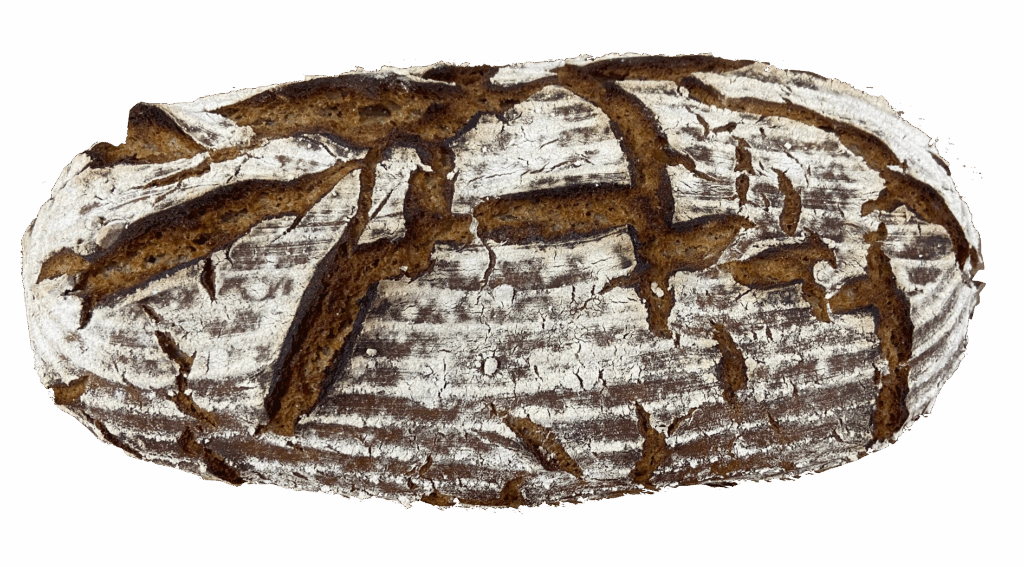 Das Roggenbrot gehört zu meinen „Klassikern“. Die Herstellung erfolgt über einen 3-stufigen Roggensauerteig, der für ordentliche Triebkraft sorgt und dem Brot ein herrlich würziges Aroma verleiht. Abgerundet wird der Geschmack durch mein selbst gemischtes Brotgewürz.